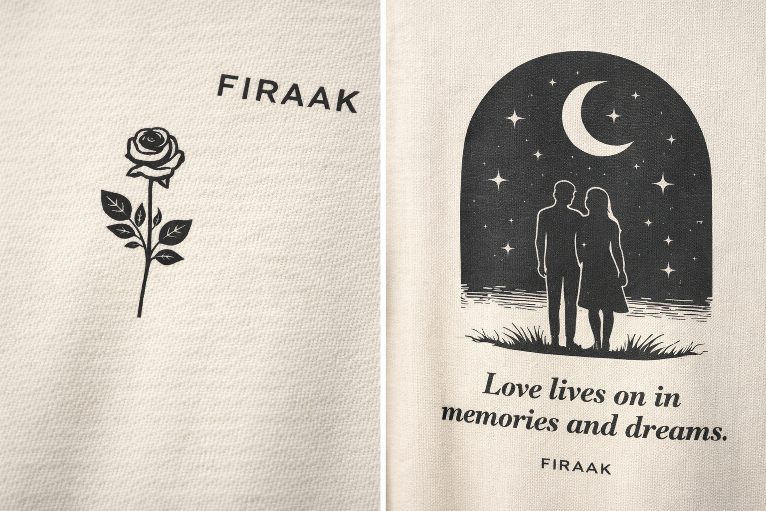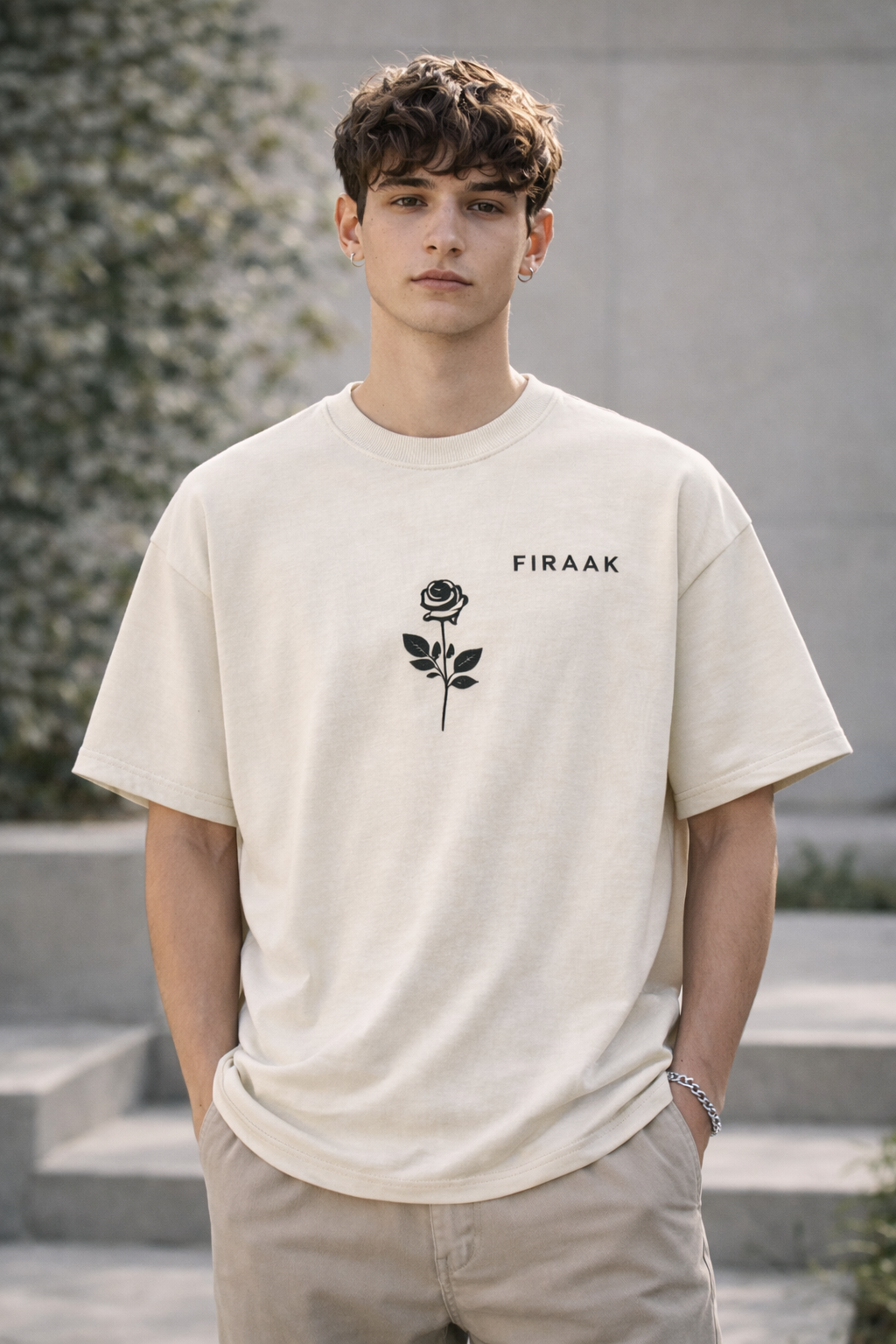 The Midnight Memories Oversized T-Shirt captures the quiet beauty of love that lives on through memories and dreams. Featuring a minimal rose emblem on the front and a poetic nightscape artwork on the back, this piece reflects FIRAAK’s essence — separation not from people, but from who you used to be.
